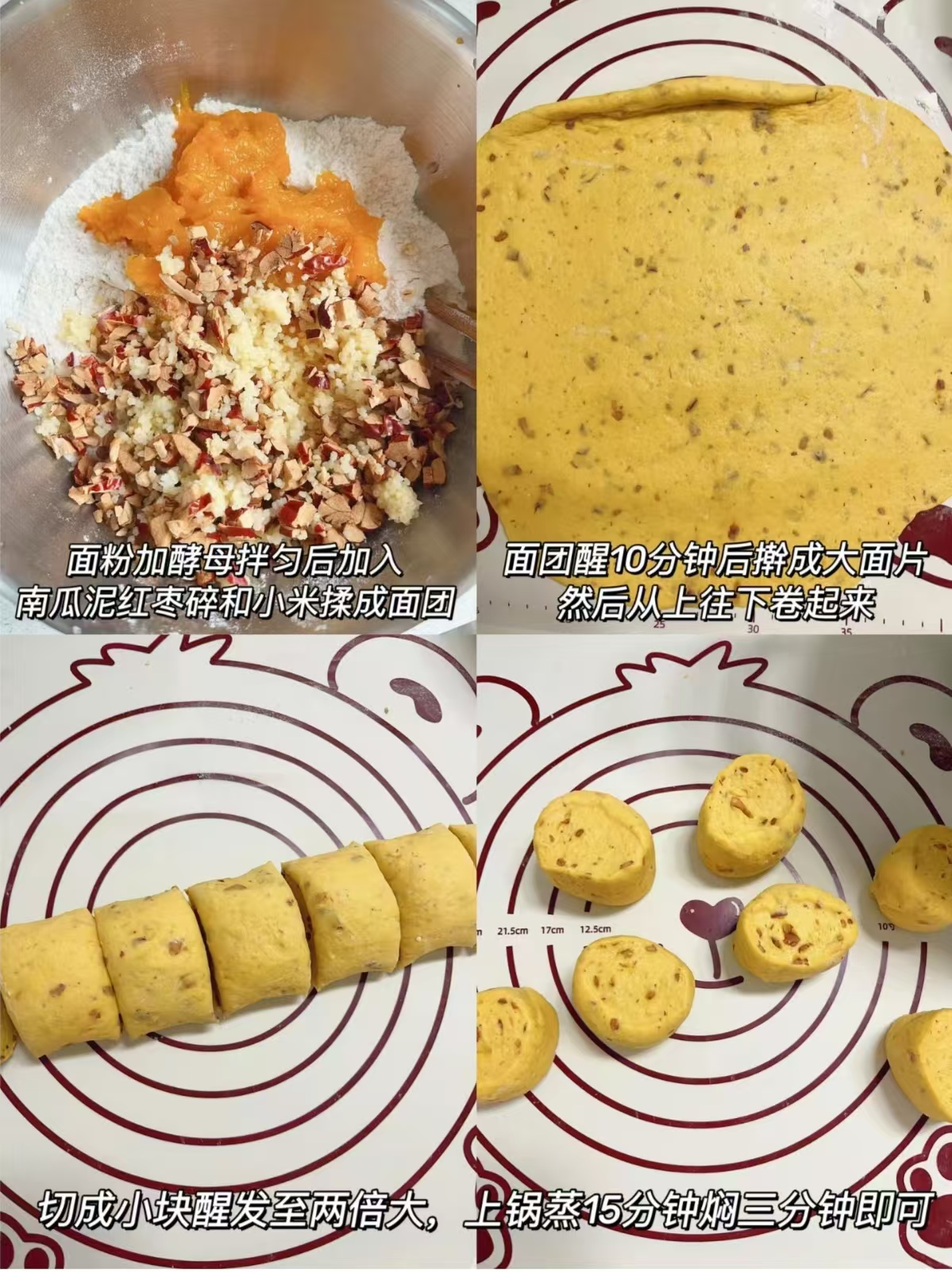 小米南瓜红枣馒头真的爱惨了,大人小孩多吃发面食物最养脾胃,在加点小米和红枣南瓜自带甜味让馒头特别好吃,松软香甜!
