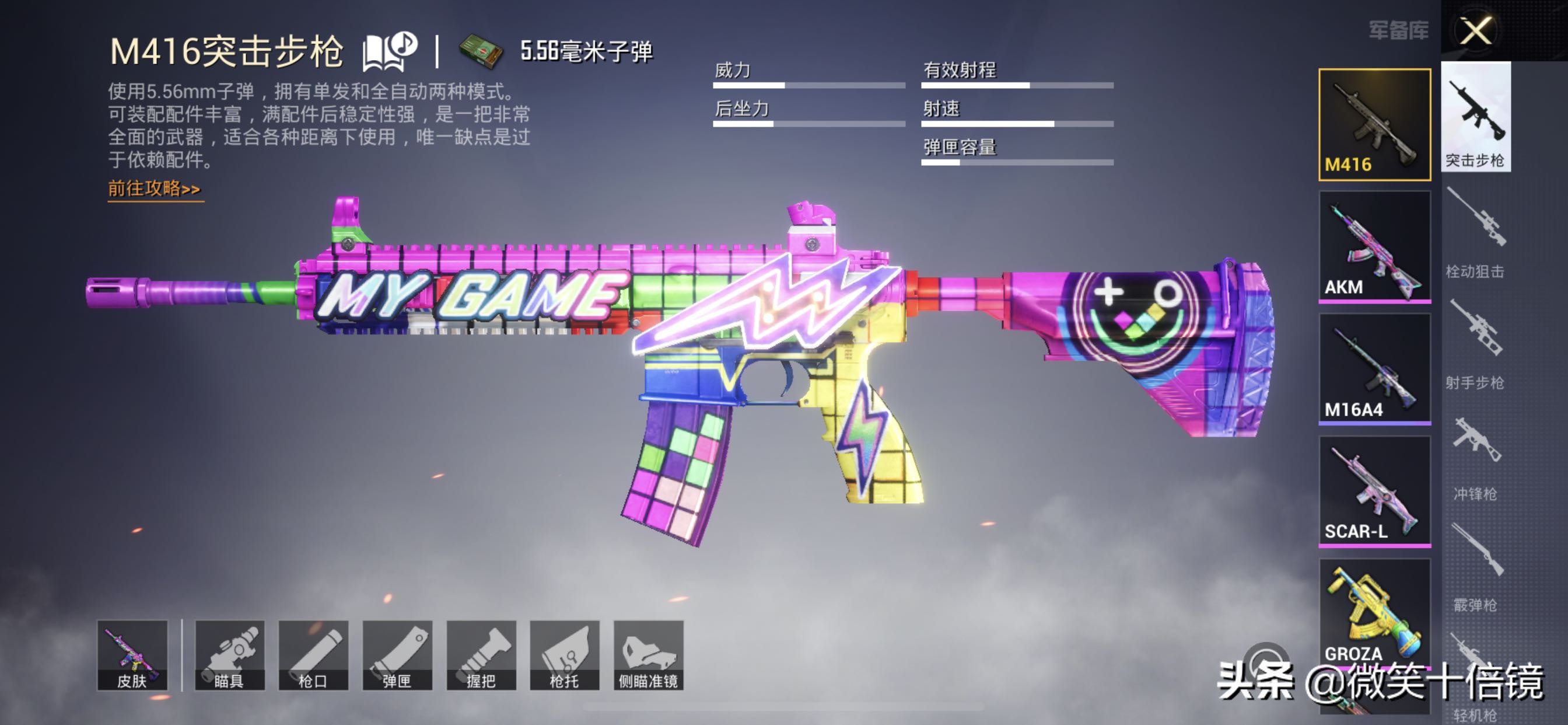 务实、不浮夸!我是你们的好朋友,微笑十倍镜。作为一款主打“大逃杀”的手游,和平精英拥有非常多的武器可供玩家选择!即便如此,玩家最常使用的枪械却只有一款,那便是稳定性非常高的M416了!
