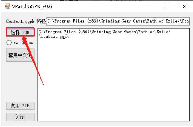 之后选择套用POE,选择文件夹中的ggpk文件。