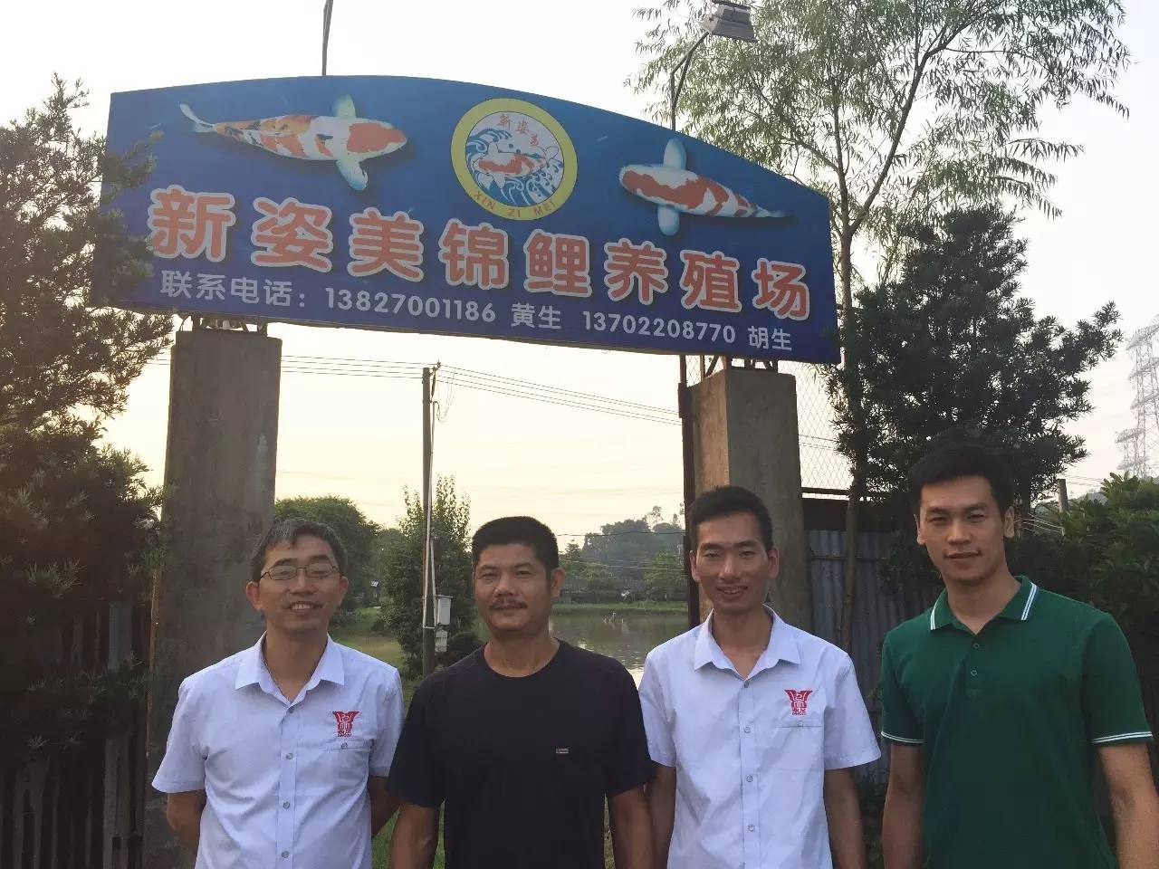黄锦明(左二)养殖的锦鲤获得过不少奖项。