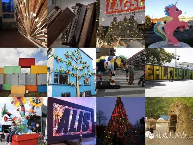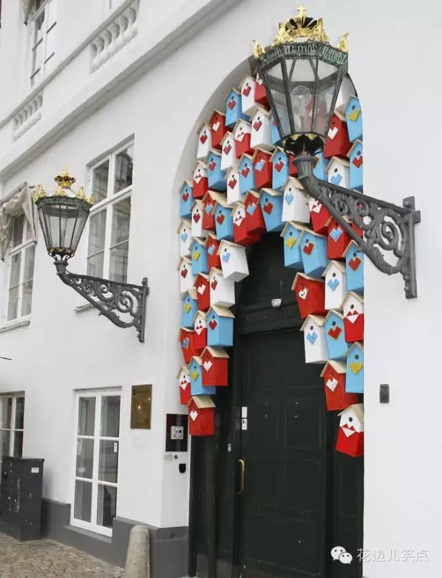 在丹麦首都哥本哈根一年一度的文化盛事“文化之夜”期间,小哥也将他的鸟巢带到了那里,并选择了与北欧五国国旗相匹配的颜色来装点这些小房子。