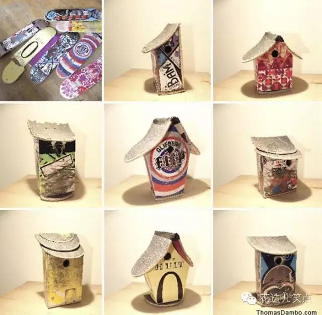以下这些是用废弃的滑板做的朋克风鸟巢,看来不做个造型都不好意思在里边下蛋了~