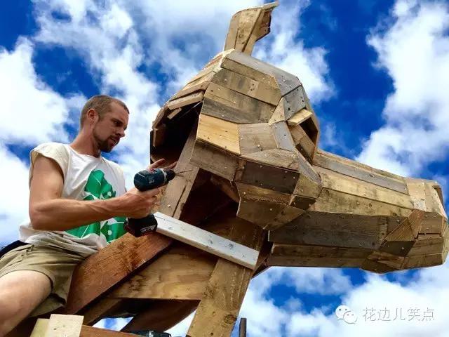 远不止这些,小哥和他的团队曾在许多城市开展过公益环保活动,大型雕塑展览等。所有大大小小的项目物料,都是将那些废弃的可回收资源再利用,创造出一些既有价值,又具艺术性的作品投放到城市的各个角落,以实际行动号召大家参与进来,倡导绿色环保理念。