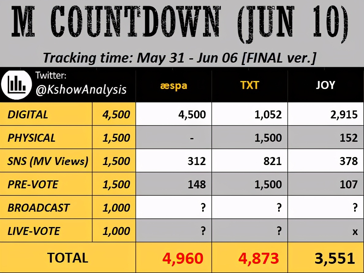 从图中可以看出,1位候补aespa和TXT的分数不相上下,最重要的则是实时短信投票。