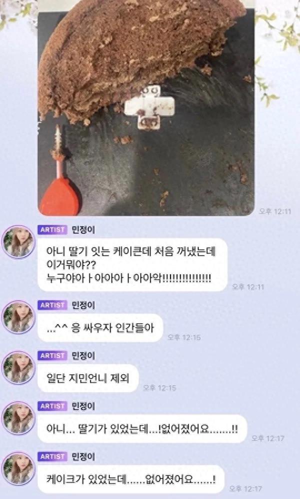 事件是从WINTER(敏静)在Bubble中,分享没有草莓的草莓蛋糕照片开始的。