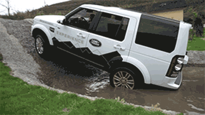 在水中行驶时,根据水波产生的特点,可以与推开的弓字形波纹(也就是水纹)波峰保持大概一米的距离匀速行驶,因为这时候车头正好处于波谷,也就是变相低降低的涉水的深度。