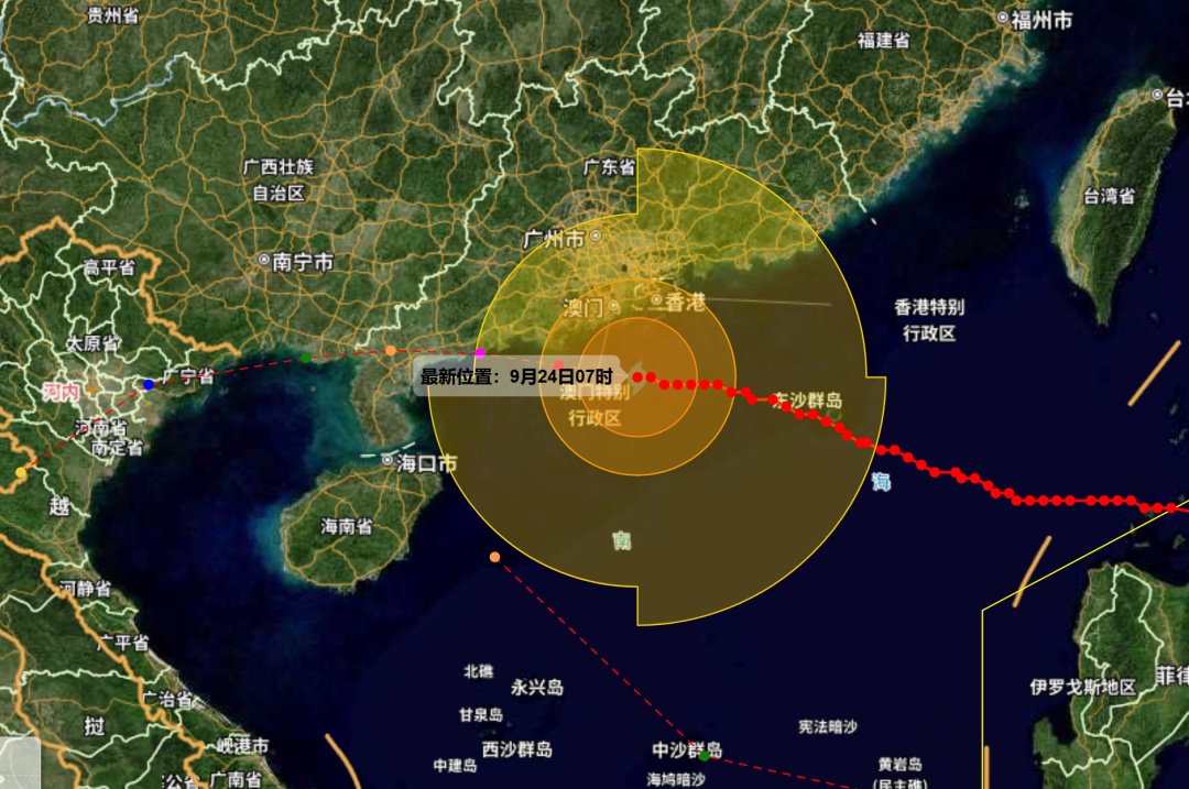 大风预报:24日08时至25日08时,巴士海峡、南海大部、西沙群岛、中沙群岛、南沙群岛、东沙群岛及黄岩岛附近海域、台湾海峡、台湾以东洋面、东海南部、北部湾、琼州海峡、福建沿海、广东南部地区及沿海、珠江口区、海南岛沿海、广西沿海、台湾岛沿海将有6-9级大风、阵风10-11级,其中,广东沿海和南海北部的部分海域风力有10-13级、阵风14-15级,台风中心经过的附近海域或地区风力可达14-15级、阵风16-17级。