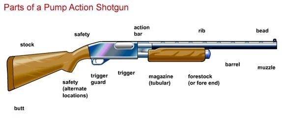 - 泵动式(Pump-action):位于枪管下方的前托后拉后推,以完成装弹循环。