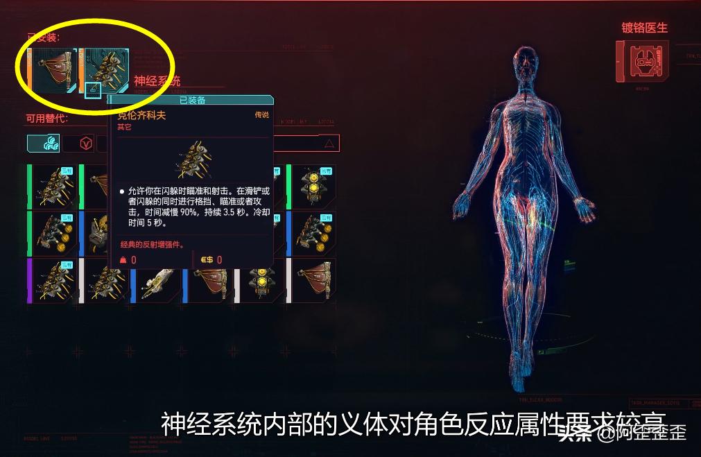神经系统内部的义体对角色反应属性要求较高,但一共只有两个插槽,所以还是比较好选择的。