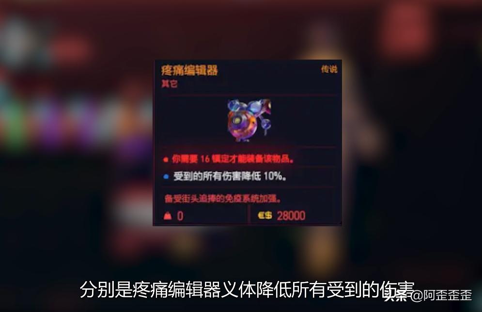 分别是疼痛编辑器义体降低所有受到的伤害。