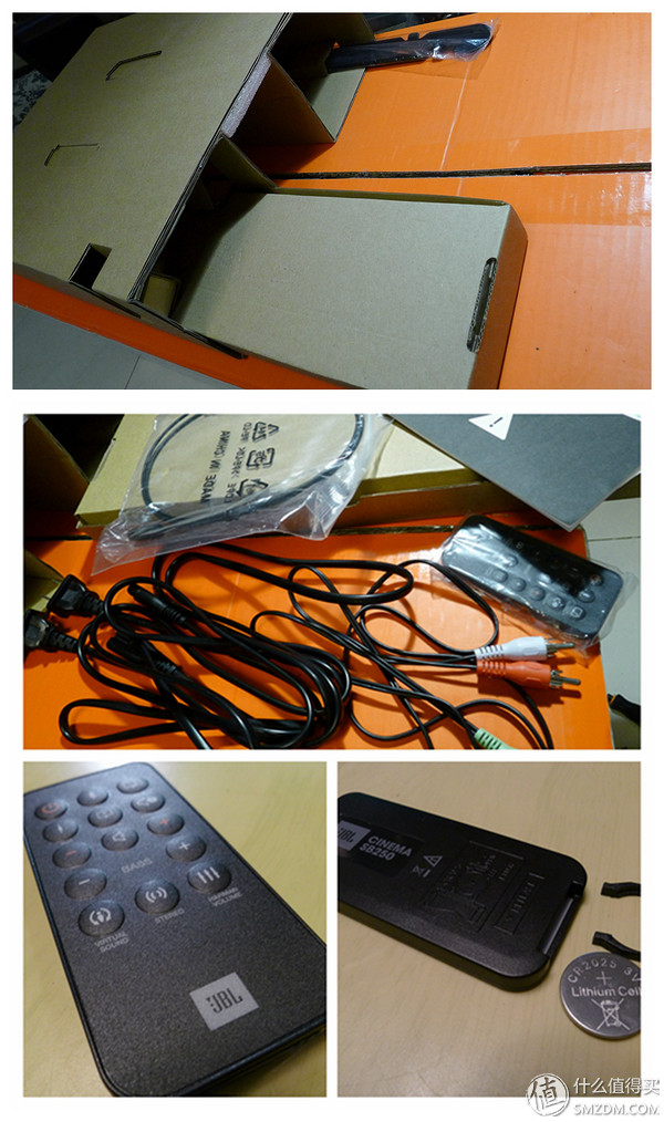 箱内分别是条形中高音四喇叭音箱+低音方形音箱,还有一个抽屉纸盒,内有电源线*2根+光纤+AUX音频线+红外遥控器+说明书,另一侧放了一个墙上支架。其中两根电源线长为150cm、光纤线长118cm、AUX音频线长124cm。↓↓↓