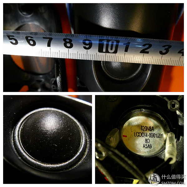 关于条形音箱的喇叭单元规格JBL官方专卖店提供的信息是中频55mm,高频32mm,实际测量尺寸如下图。