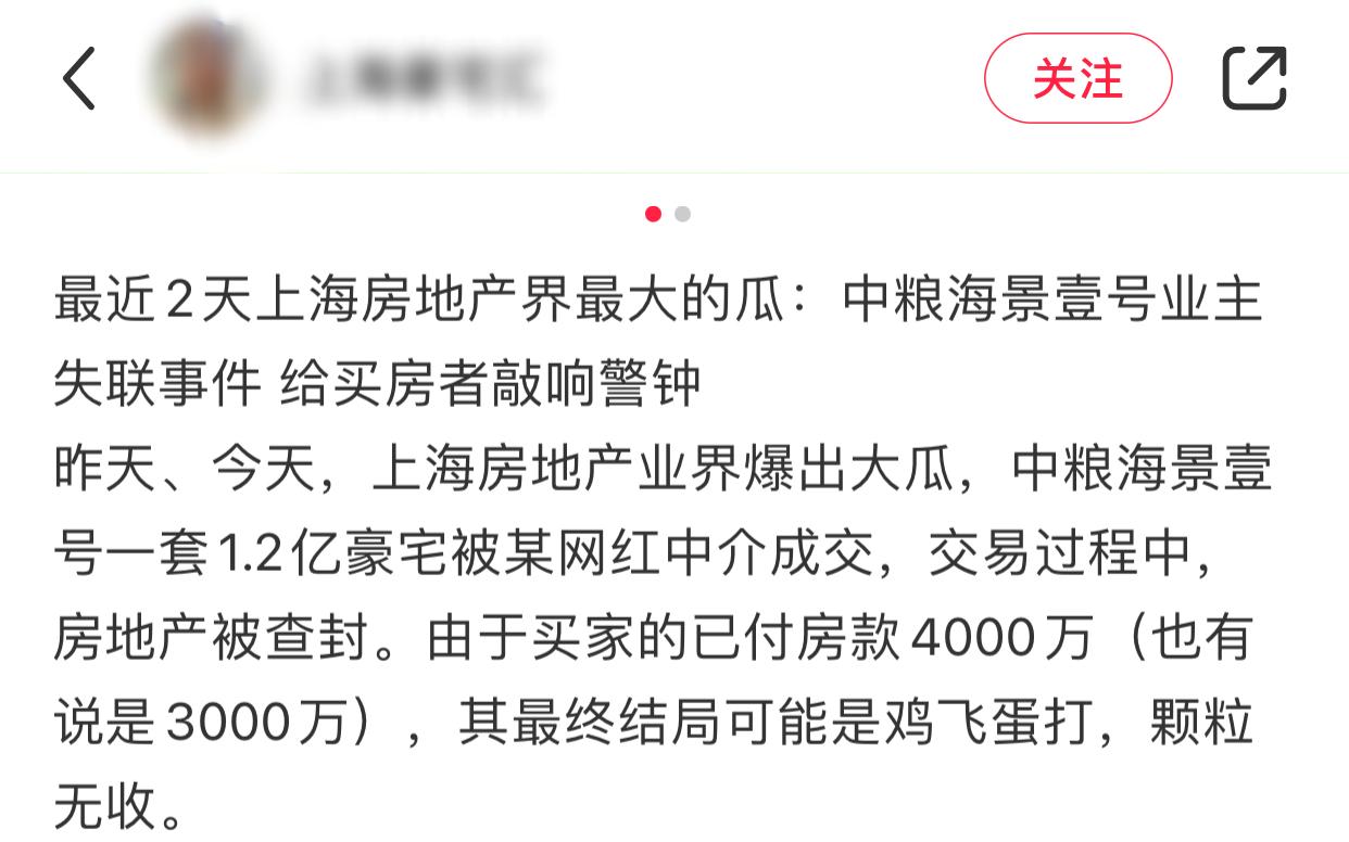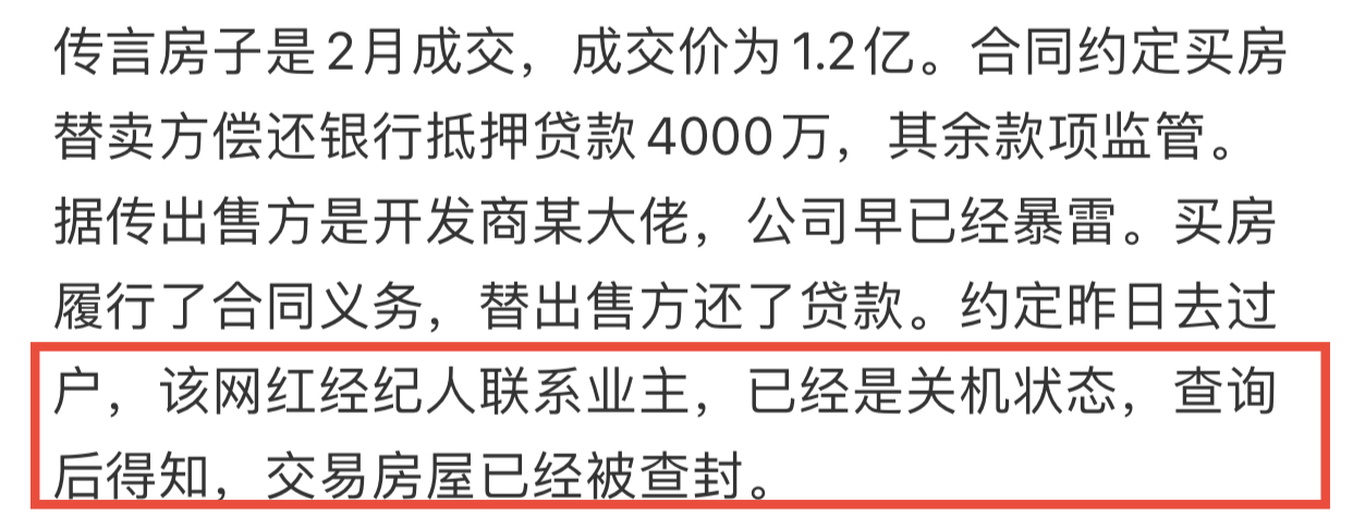 然而,就在网红决定去登记房产过户的时候,突然得知这栋豪宅已被查封,卖家失联,房产经纪人也联系不上卖家。也就是说,即便是网红斥巨资,这套房产依然不属于他。