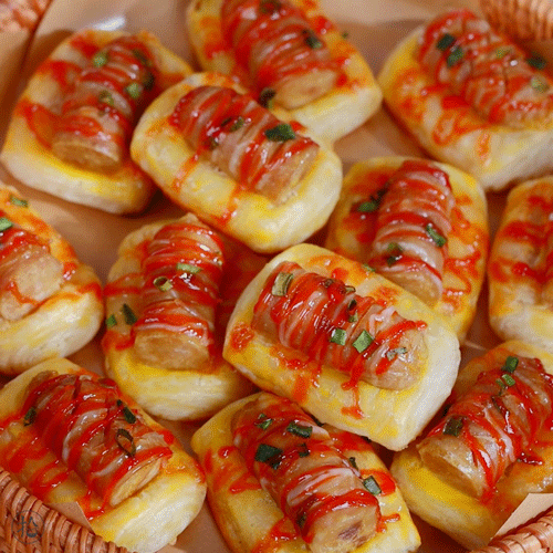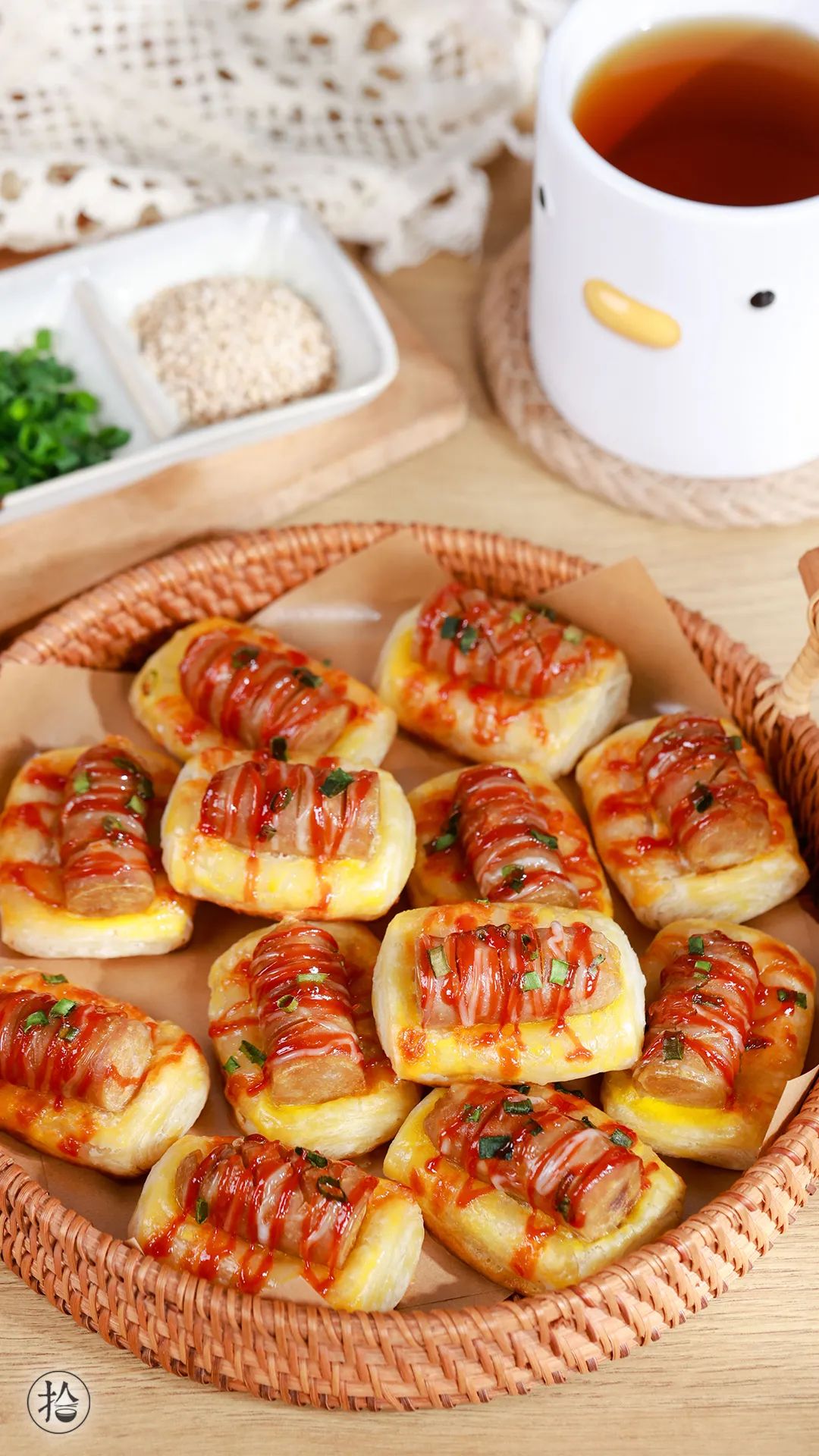 一出炉边便满屋飘香,两口就可以解决一个,饼皮酥脆,香肠肉质饱满,不用担心会不饱腹。