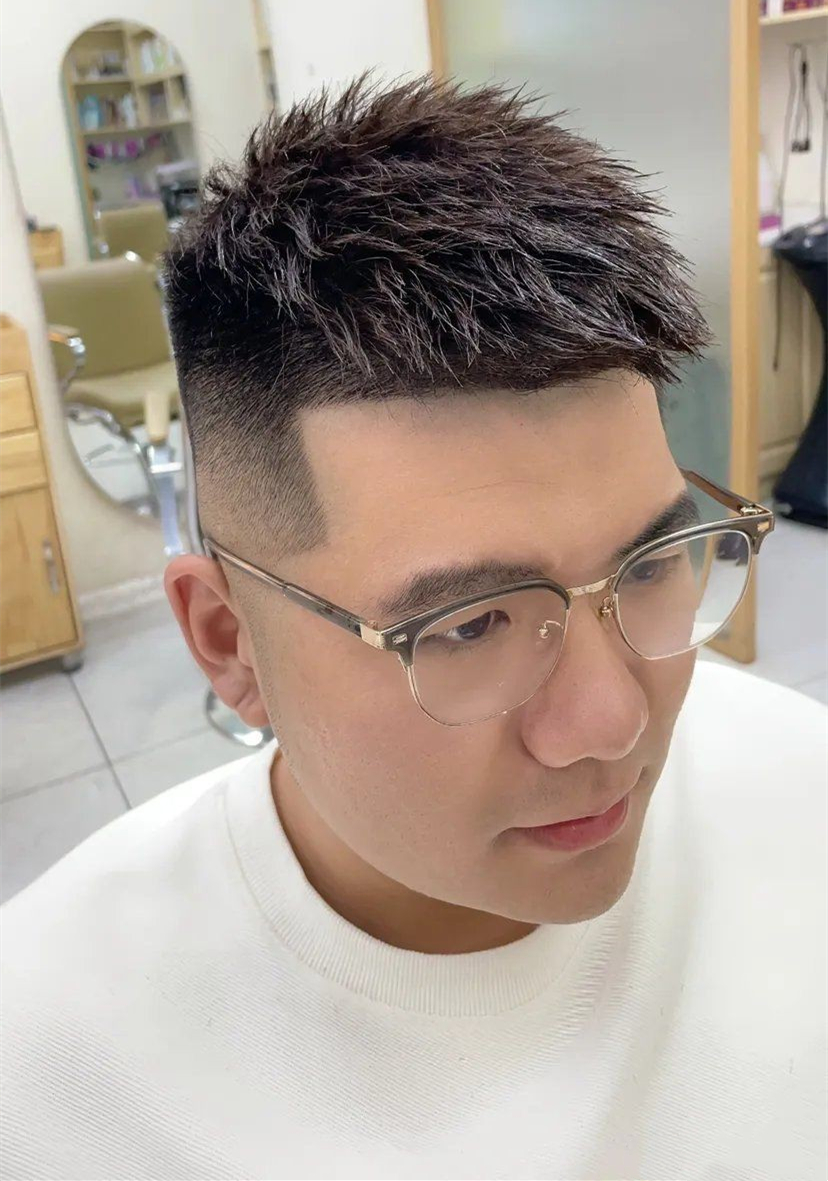 如果喜欢碎发的感觉,可以把顶部的头发保留碎发的效果,建议鬓角和后面的头发剪短剪薄,这样看起来也清爽利落一些,顶部的碎发可以打理出飞机头、前刺头的造型,及潮流时尚,又干练有型,也符合成熟男人的风采。
