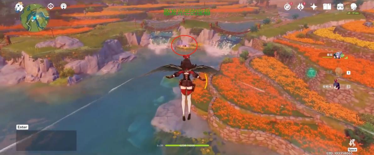 有玩家应该对这个是有印象的,就在两个小瀑布的中间,是有着散发明显光芒的宝箱的。
