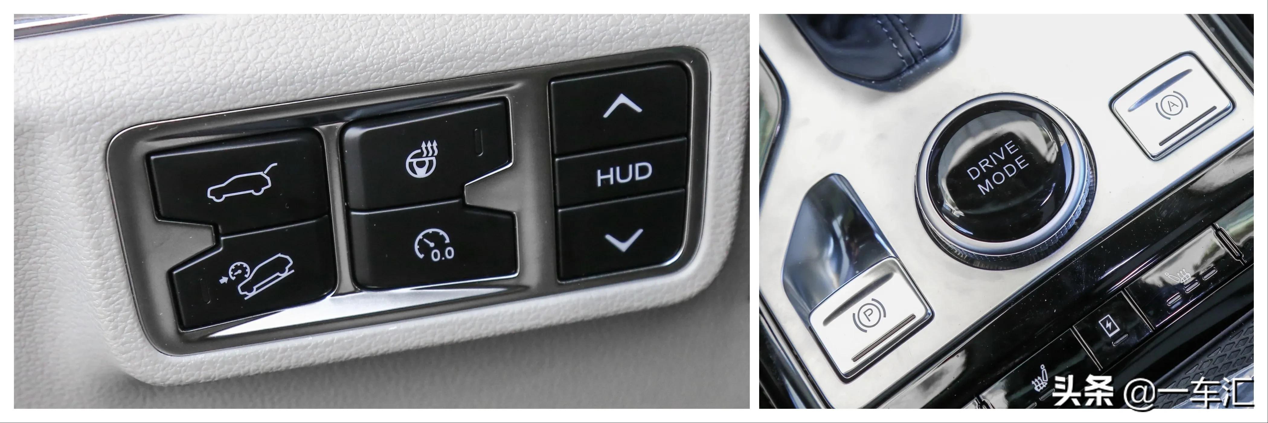 其它车辆辅助/操控配置方面,全系标配电子手刹、自动驻车、发动机启停、上坡辅助、陡坡缓降、以及五种驾驶模式切换,两款智联旗领版车型还增加自动泊车入位,只有顶配智联旗领四驱版配备了悬架软硬调节。全系除两款智联旗领版车型采用的是全速自适应巡航外,其它三款车型均为普通定速巡航系统,由方向盘后方单独的拨杆控制。
