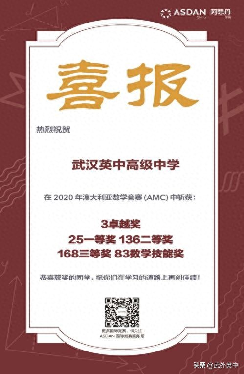祝贺英中学生在2020澳大利亚数学竞赛AMC中创历史佳绩