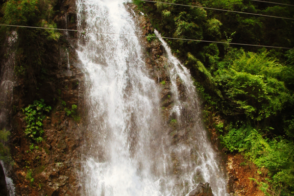 从红坪画廊到鸭子口的路上遇见飞流直下的瀑布,很美,很凉快