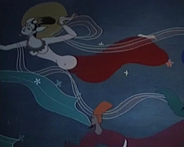 动画片以图画来表现故事,用造型艺术手段绘制无生命的假定形象,通过对物质世界的变形,呈现出一个极其广阔的想象空间。在各种意象、情节组成的想象空间背后,总是隐藏着某种深意,不同层次的观众可以依据自身理解进行诠释。鉴于动画片是“活动的图画”,好的动画片必定具有相当高的艺术性。得益于国际间的交流,如今技术手段已不再是制约动画发展的瓶颈,对传统经典素材的视觉诠释才是极其匮乏的。重新审视来看,制作于1981年、直接继承敦煌壁画艺术风格的中国动画《九色鹿》和1998年植根于西非神话故事、吸取古埃及壁画艺术的法国动画《叽哩咕与女巫》,无论结构、造型,还是赋彩设色上,都呈现出极高的艺术观赏性,同时对所依据的文化背景也做出了忠实表达。
