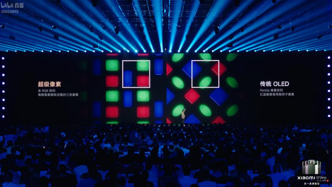 按照小米的说法,手机屏幕技术上,第一次做到了一个像素点里拥有独立的 RGB 像素,不需要再像传统的 OLED 一样,借用相邻的子像素了,所以小米17 Pro Max 屏幕的物理分辨率没有 2K,显示效果却与 2K 同一水准。