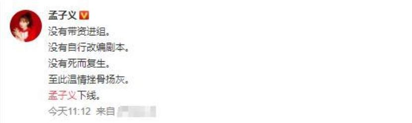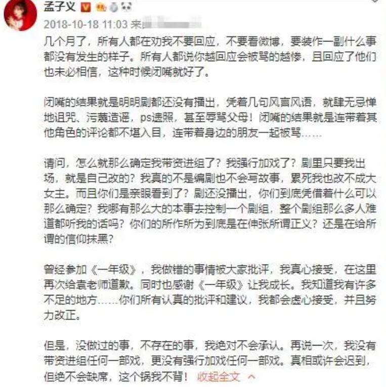 对此,孟子义也禁不住在社交平台上连环发声否认加戏的传闻,并否认带资进组,这才让争议稍稍平缓。