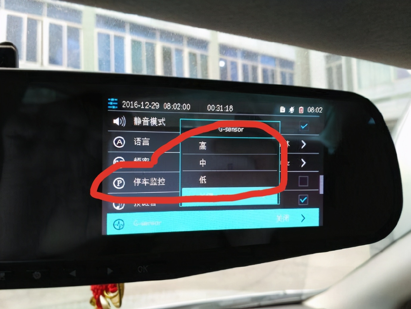 解决办法:行车记录仪重力感应选项的灵敏度设置一般选择低或者关。