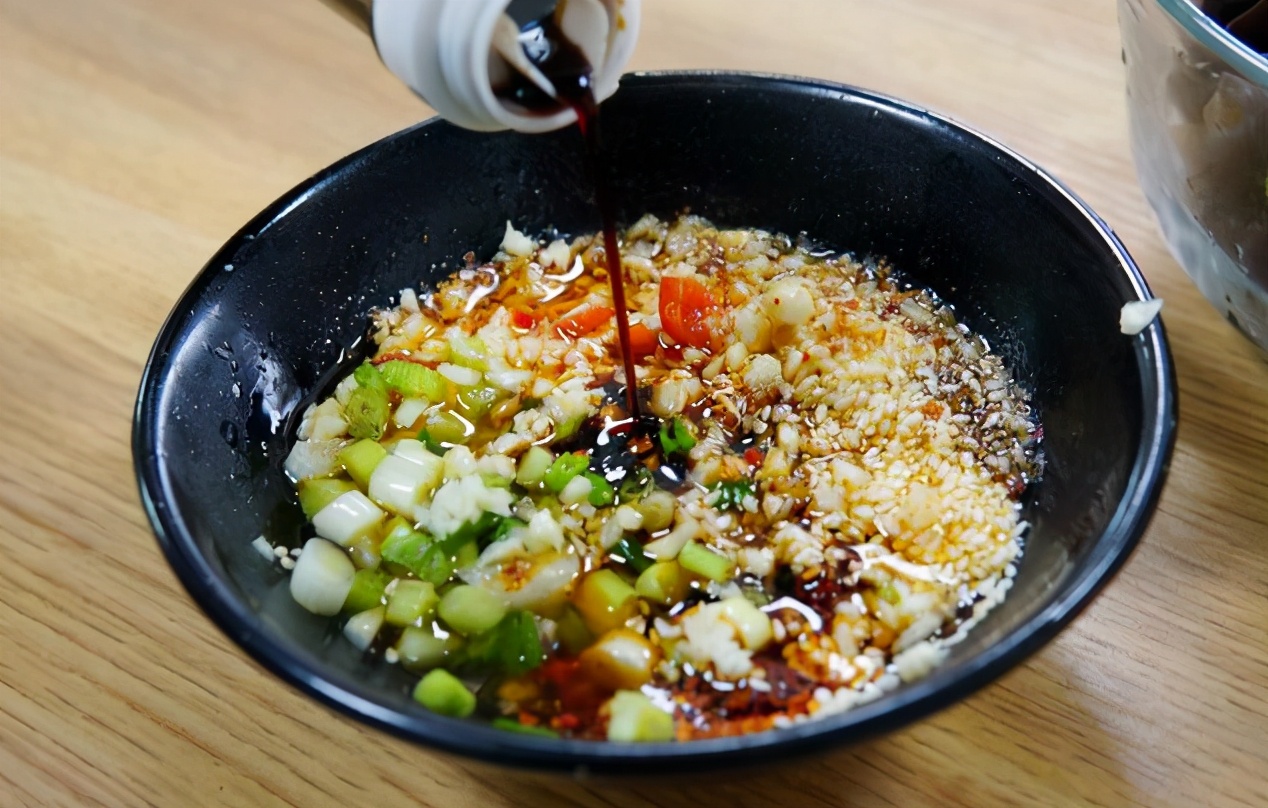 接着加入食盐、白糖、生抽、香醋、香油,爱吃醋味重的朋友可以把香醋换成陈醋。