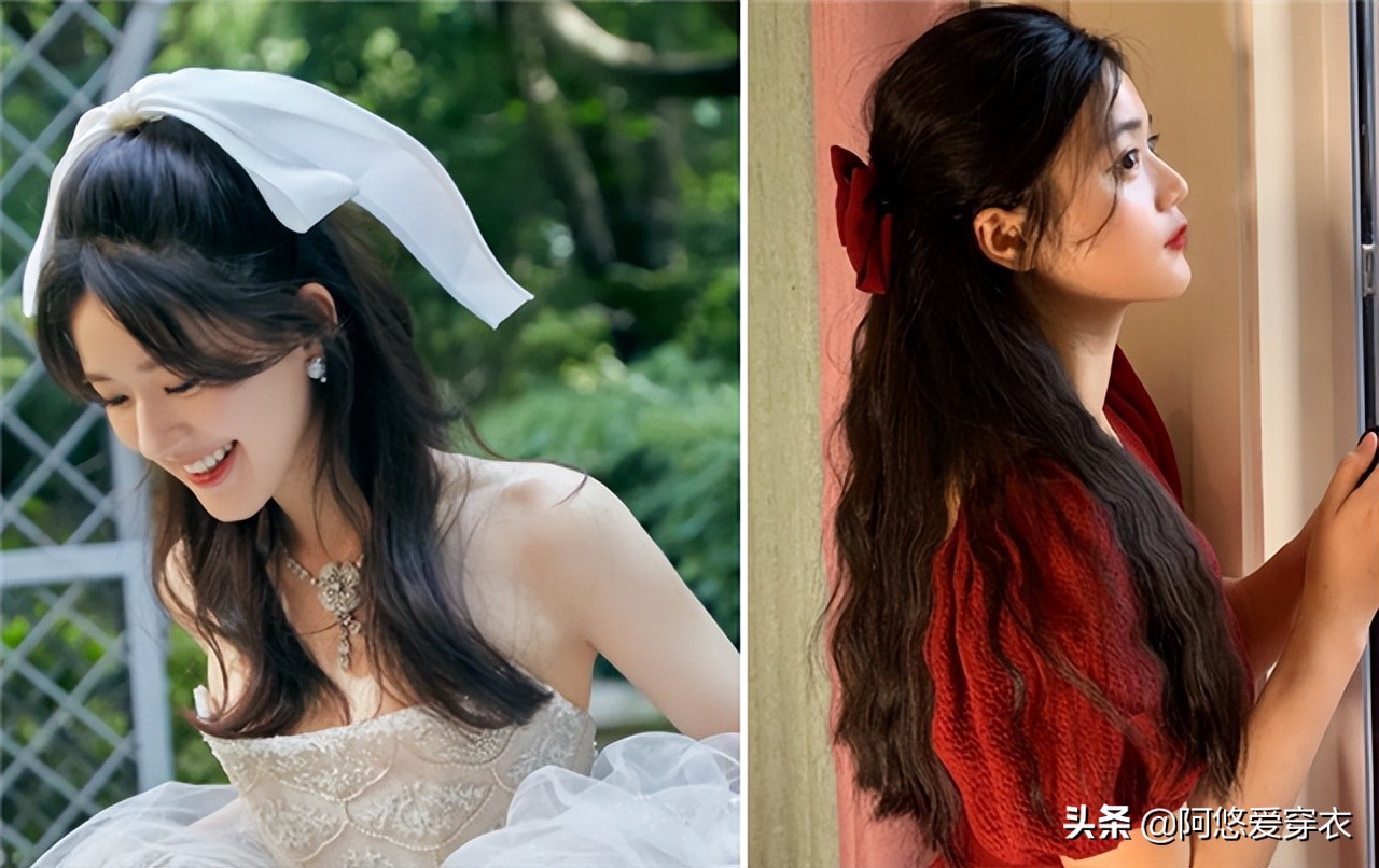 这种半扎发它也可以修饰我们的脸型,并且不会暴露发量的问题,就算你头发发量比较少,也可以试试,而大多数人在选择这种法式优雅半扎发的时候会后面加上一个蝴蝶结,这样特别显气质,优雅且甜美。