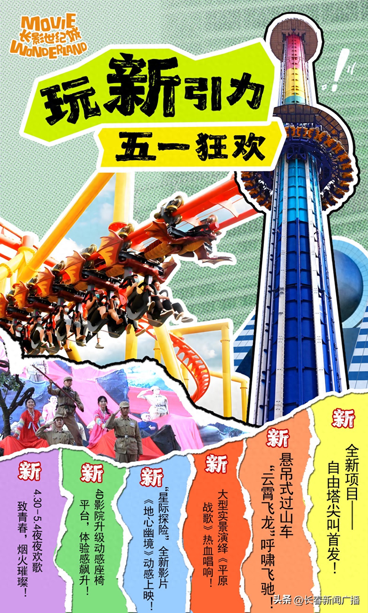 “五一”假期来临,长影世纪城推出“五一狂欢季”主题活动,全新大型室外游乐设施与沉浸式实景演绎将一齐登场,为游客带来昼夜不间断的欢乐体验。