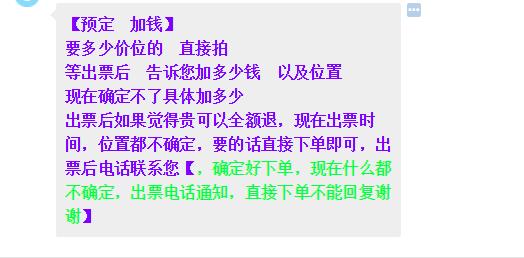 结果得到的答案基本一致,“预订,加钱”,商家负责帮你搞到票,到时候加多少钱他们来定。估计,加价金额会和门票需求人数直接挂钩。