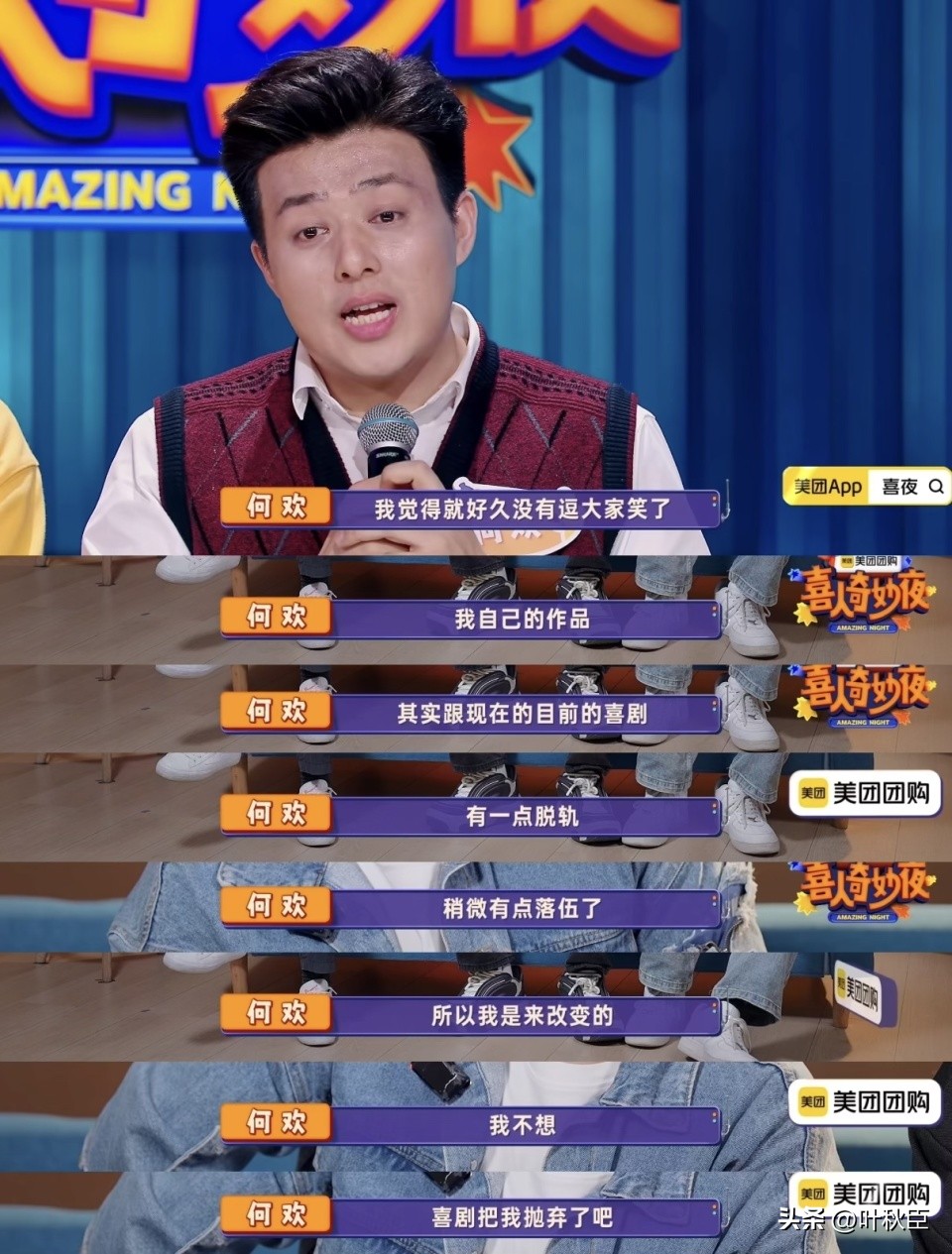 何欢在表演后说,他发现自己做的东西脱轨和落伍了,如果不想喜剧淘汰自己,那就努力跟上喜剧改变的步伐,这就是作品完成后反哺给演员的反思。