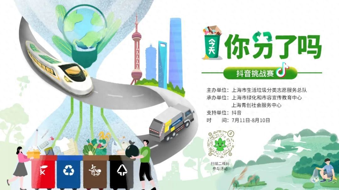 【垃圾分类短视频抖音挑战赛】今日正式启动,评选结果将在“绿色上海”微信公众号和官方抖音账号公布,并进行优秀作品展播。