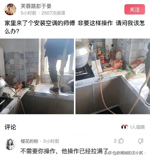 【沙雕问题11】:家里来了一个空调安装的师傅,非要这样操作,请问我该怎么办?