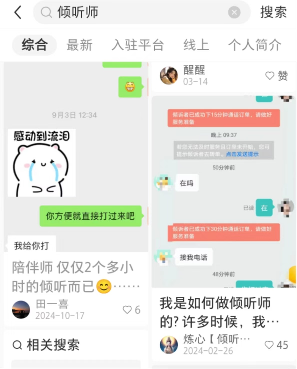 “提供情绪价值”“释放你的压力”“保密情感树洞”……倾听师小琼(化名)在网络社交平台上写下吸睛文案,每篇文章的互动不多,但找上来的人却不少。