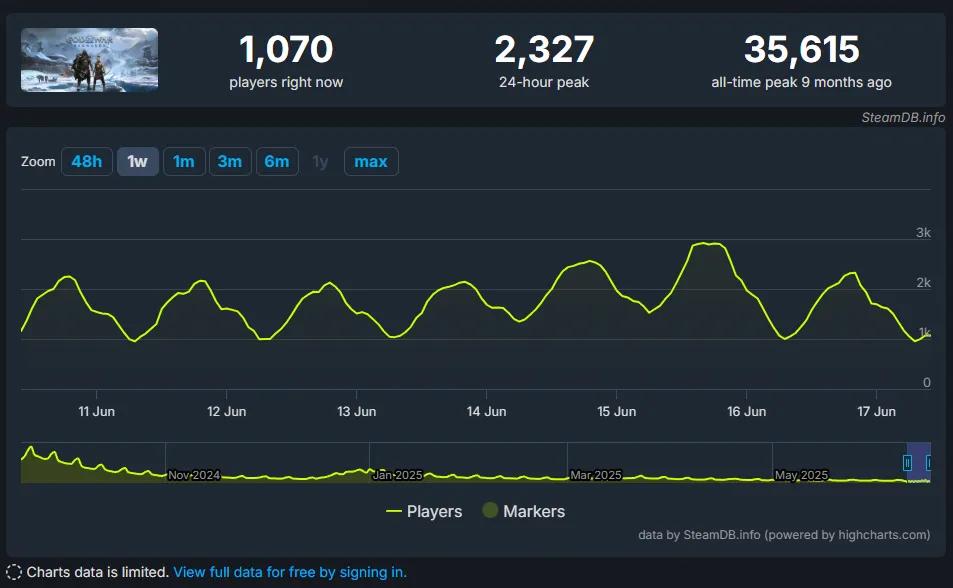 作为对比,《战神:诸神黄昏》的同时在线人数峰值仅为3.5万