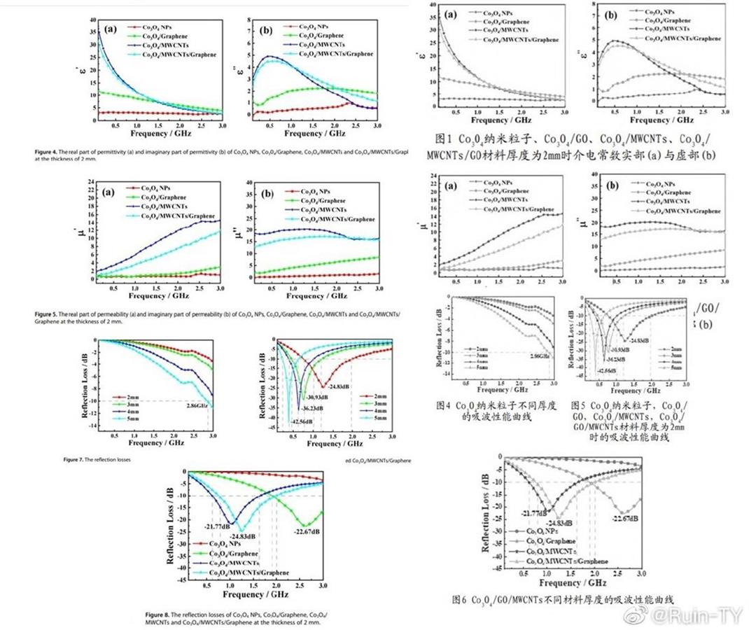 小涛提供的两篇论文显示,两篇论文都是论述了Co3O4/MWCNTs/GO这一复合材料制备方法,并对其中的吸波机理展开了研究。极目新闻记者注意到,在结果与讨论部分,除了部分表述雷同外,两篇论文多个图表的数据也几乎一致。