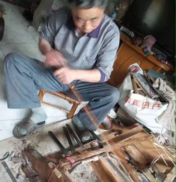 第二、组装完毕后,开始调试驱动装置,也就是拉绳在这里拉绳相当于电机,磨珠子的时候右手不停的拉这个装置,实现珠子的顺逆时针旋转。这个东西在偏远农村现在依然能看到的。