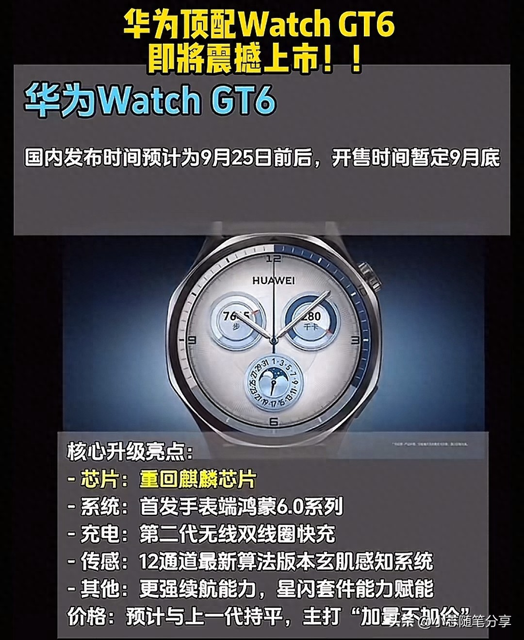 太猛了!华为又要放大招了!最新Watch GT 6系列真机图和配置全曝光,这次续航能力堪称恐怖, pro版甚至自带骑行功率计,直接对标专业运动设备!