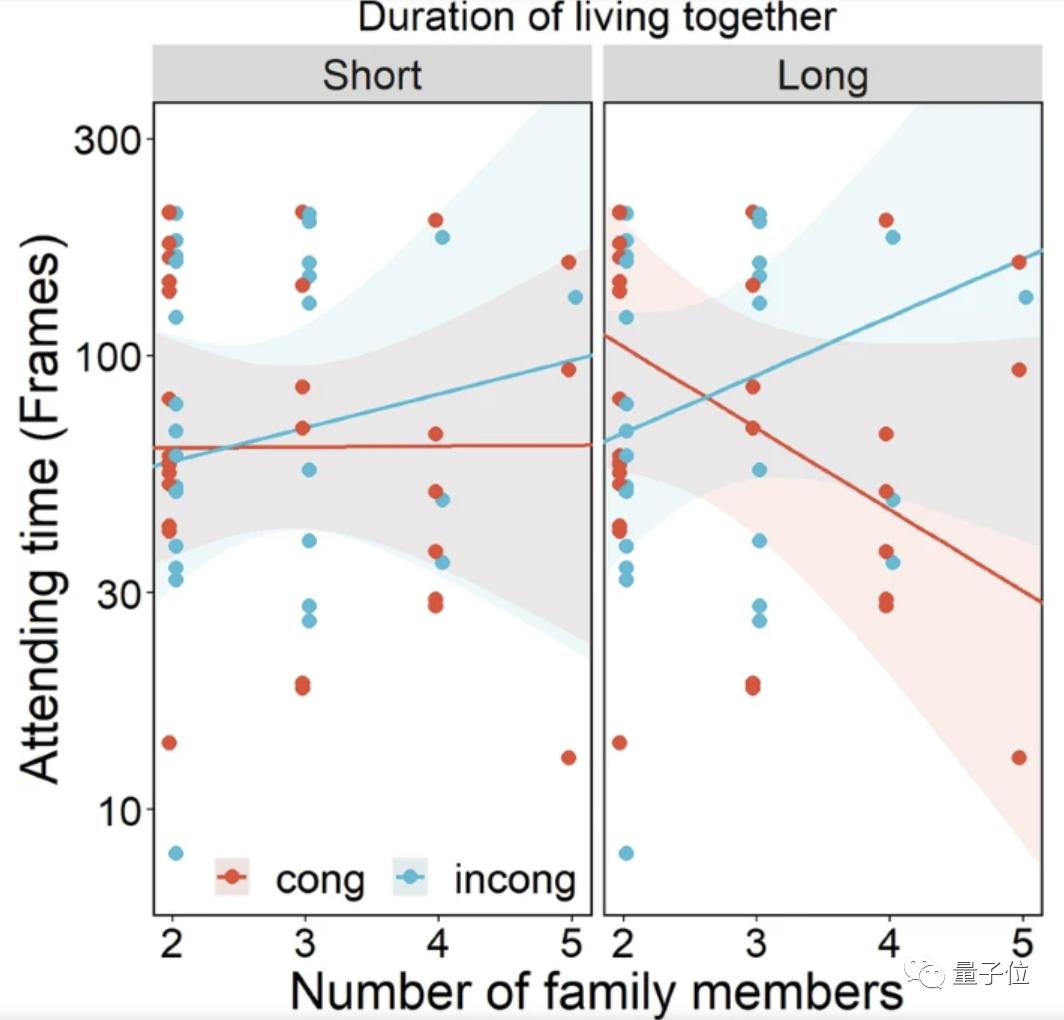且不少猫在家庭成员的数量越多,名字和照片不一致情况下盯着显示器的时间越长。