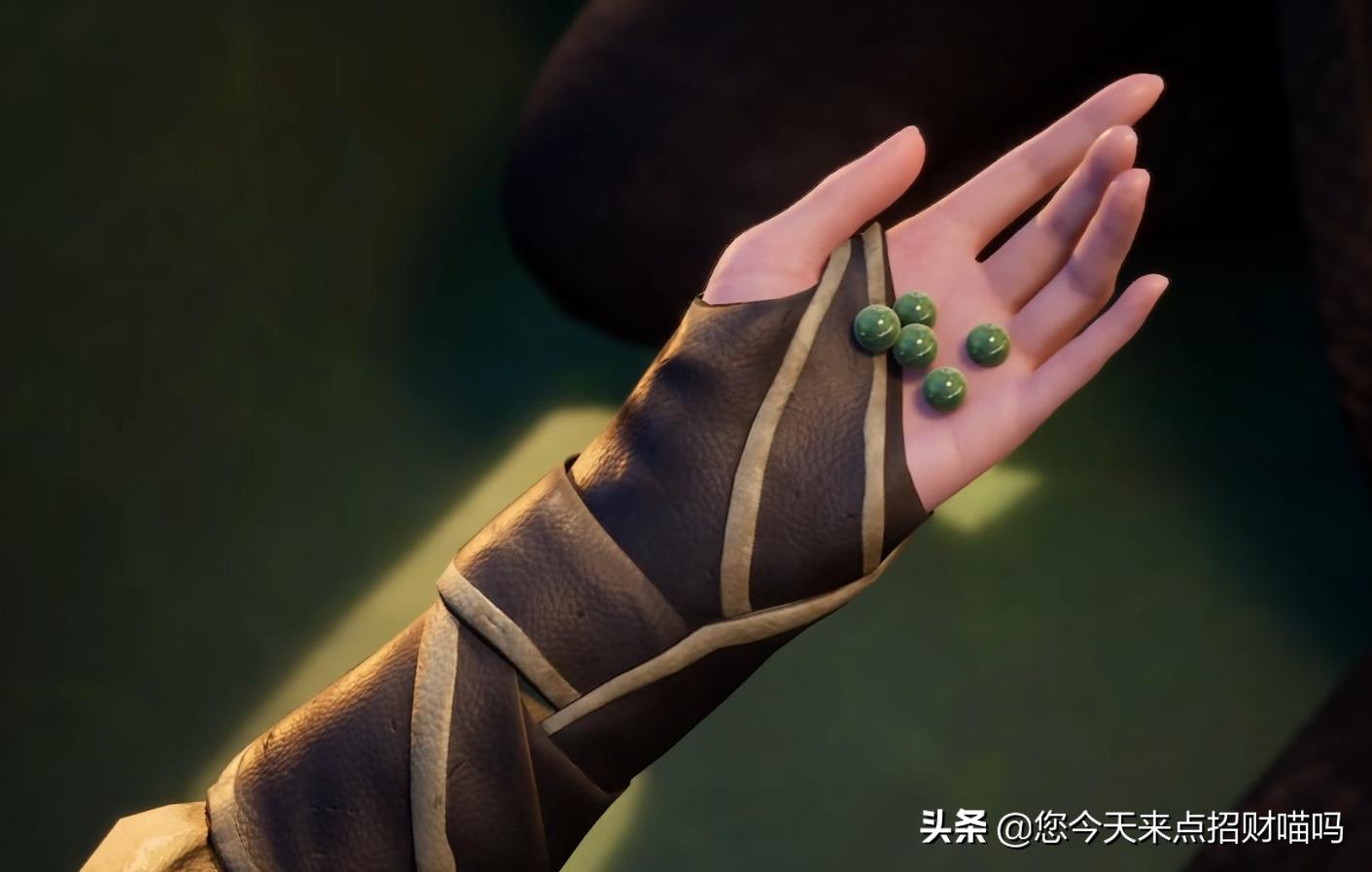 忘尘丹明显与忘忧丹外观不同,属于绿色油亮珠体丹药。