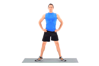 - 准备姿势:身体笔直站立,抬头挺胸,目视前方,腹部核心收紧,双腿分开2倍肩宽的距离,脚尖朝外,成外八字,膝盖与脚尖朝向同一方向,双手放在髋关节处