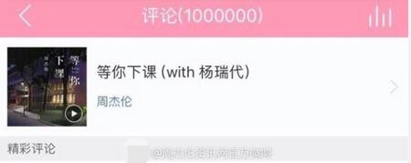 周杰伦《等你下课》评论破百万 成唯一“双百万”歌手