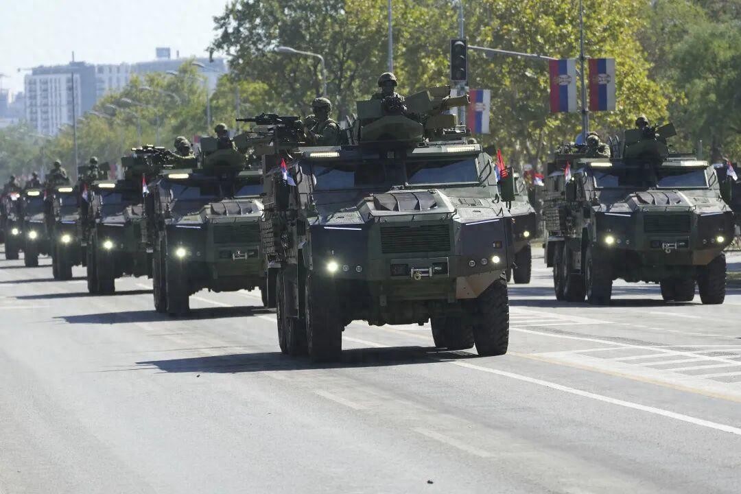 阅兵式开始时,贝尔格莱德国防大学军事学院的学员队伍托举一面长达300米的塞尔维亚国旗入场。据塞国防部消息,此次阅兵共有近1万名士兵参与,共展示约2500件武器和军事装备,包括70架航空器、600辆军用车以及20艘舰船。