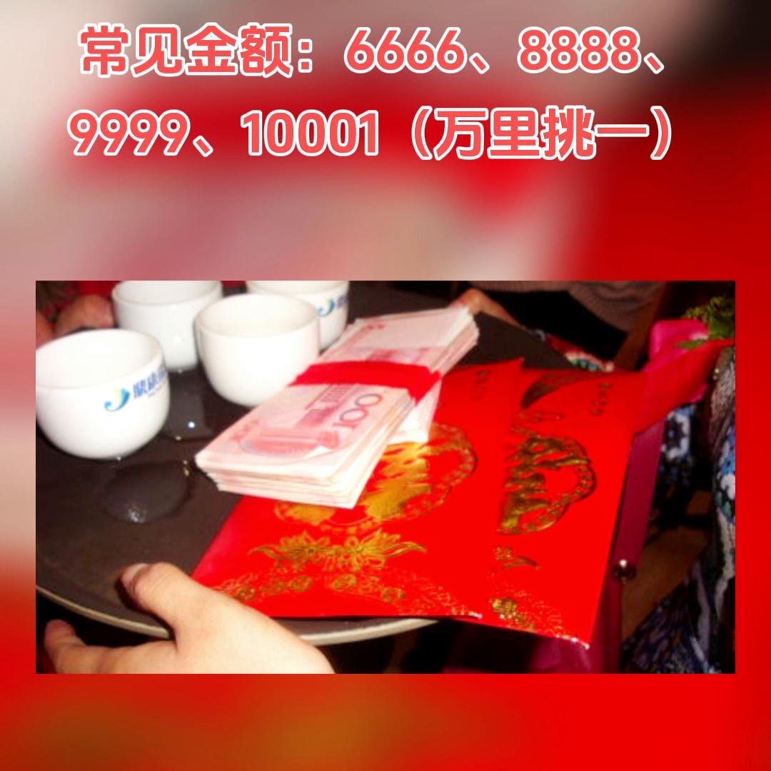 7. 改口红包:新人敬茶时,父母会给新人改口费,金额通常为6666、8888、9999或10001(万里挑一)。