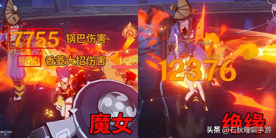 不过实测下来可见,魔女香菱的大招伤害堪堪达到9129,而绝缘套仅靠锅巴的减抗效果,就将伤害提升到了12376。