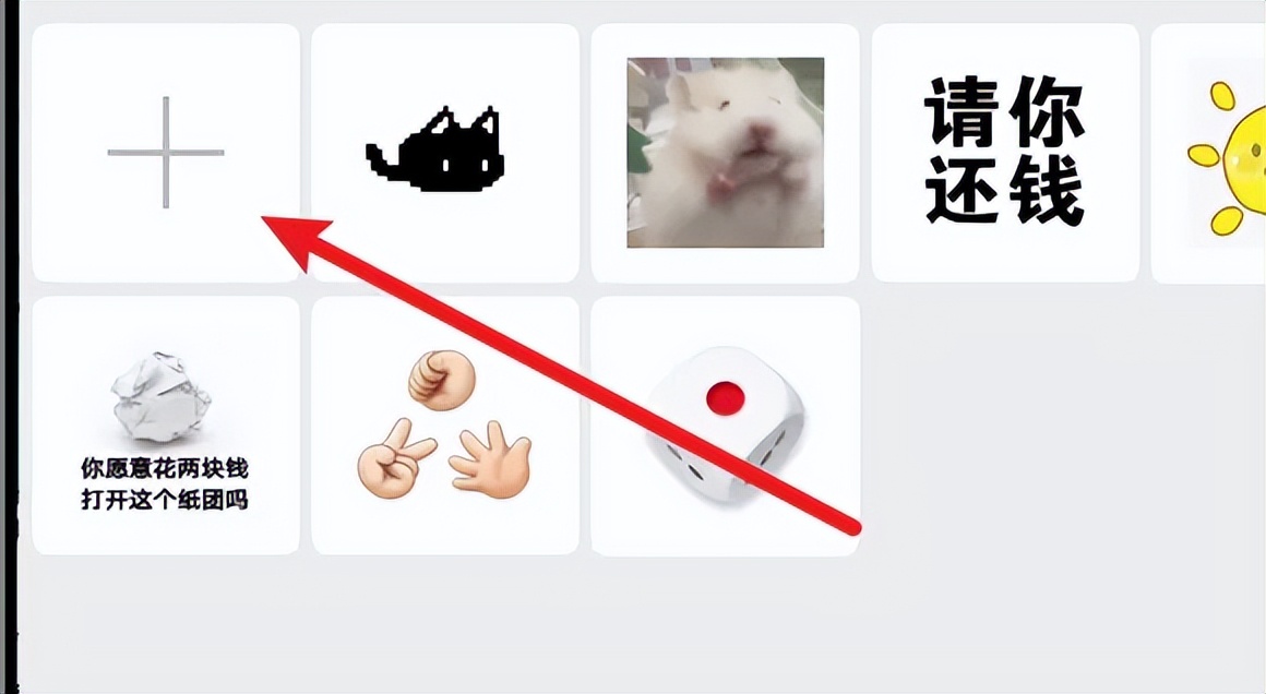 5.进入表情页面后,看到这里有一个“+”号并点击进入