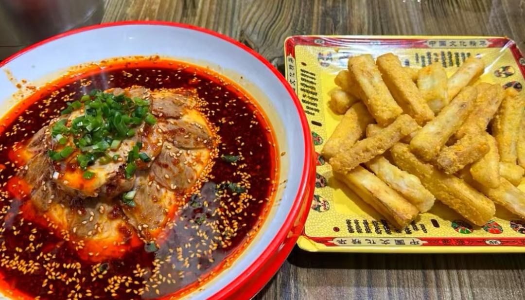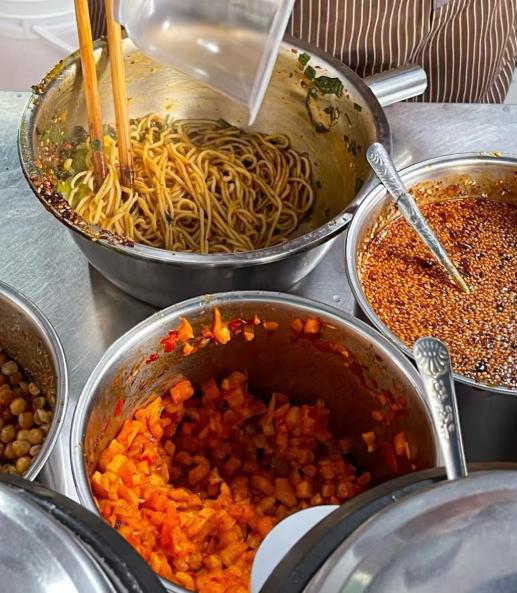 他们家有牛肉干拌、肥肠干拌、麻辣鸡丝干拌等种类,小编尝试过牛肉干拌,牛肉是比较偏硬且有嚼劲的口感,面会比较干,但非常入味,有筋道。饭点的时候排队人数较多,但是好在出餐速度快,等待不会太久。