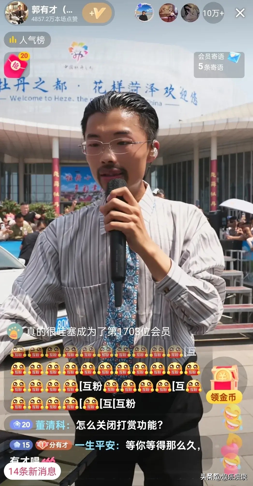 原来,有不少朋友从外地千里迢迢赶来菏泽,只为现场观看郭有才直播,郭有才非常感动,也非常感谢这些支持他的朋友们,所以23号特地直播了40分钟,答谢朋友们的厚爱。而且郭有才特地关闭了直播的打赏功能。