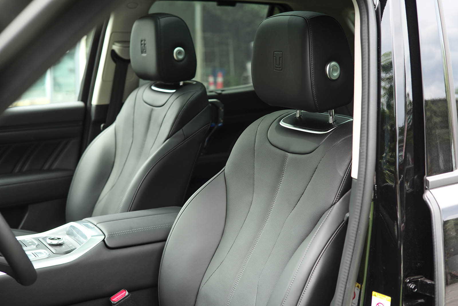 座椅十分宽大,可以很好的承托身体,头枕上还有坦克品牌的Logo。